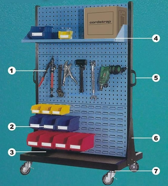 物料整理架物是以方孔挂板和百叶挂板为主要部件,结合背挂零件盒、挂钩、棚板等多种配件使用。对您生产现场的小型少量多样的工具、物料进行分类存放、方便搬运归位、充分利用空间,整洁高效。
